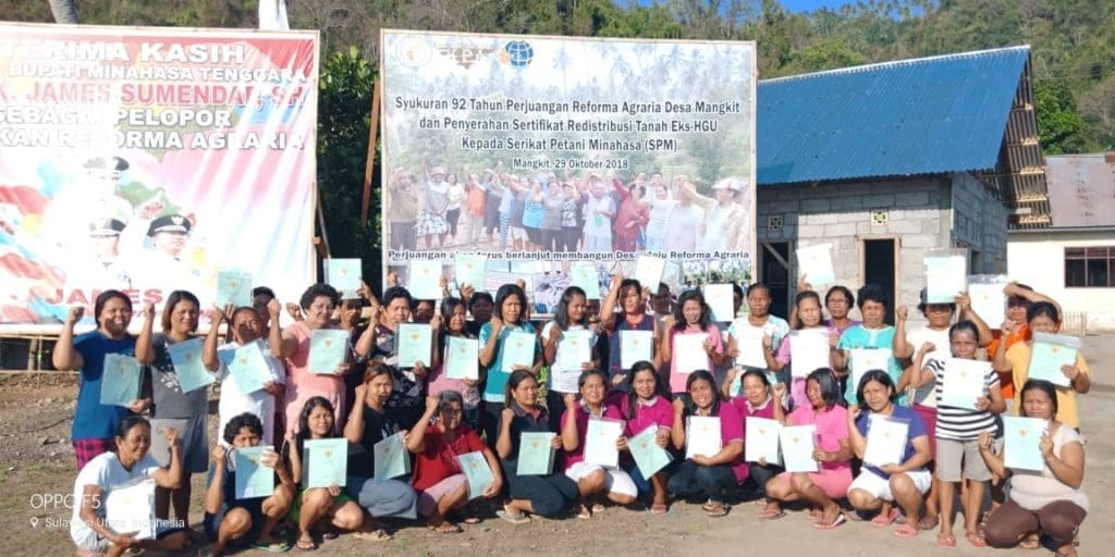In Southeast Minahasa District, North Sulawesi, 444 hectares of land were returned to the Peasant Union, benefitting 491 people in Mangkit village. For over 30 years, the Mangkit have been cultivating the disputed land occupied by PT Asiatik, a coconut plantation company that eventually split into three different companies.