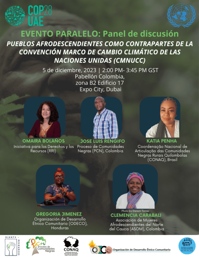 INFO: En este diálogo se discutirán los hallazgos de la investigación realizada entre RRI, el Proceso de Comunidades Negras (PCN), La Coordinadora Nacional de Comunidades Quilombolas (CONAQ), el Observatorio de Territorios Etnicos y Campesinos (OTEC) y otras 20 organizaciones base acompañantes, quienes han evidenciado datos georreferenciados significativos sobre la “Territorialidad de Pueblos Afrodescendientes de América Latina y el Caribe en Hotspots de Biodiversidad”.