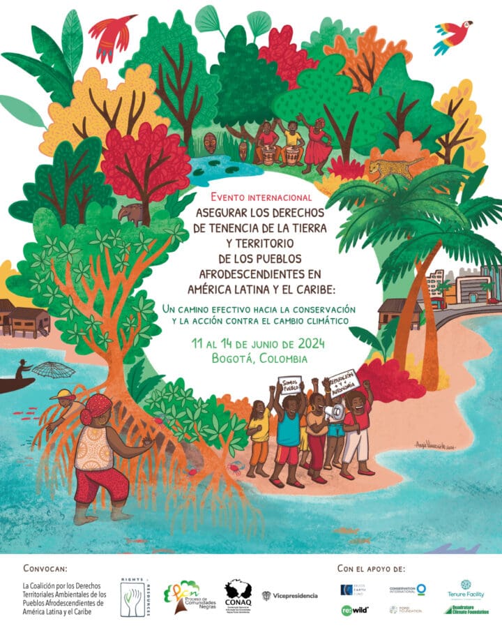 Del 11 al 14 de junio tuvo lugar en Bogotá, Colombia, el evento «Asegurar los derechos de tenencia de la tierra de los Pueblos Afrodescendientes: Un camino efectivo hacia la conservación y la acción frente al cambio climático» cuyo fin fue el reconocimiento de los Pueblos Afrodescendientes como sujetos de derechos, el compromiso y la visibilización de sus derechos territoriales para reconocer su papel en la conservación y la acción contra el cambio climático.