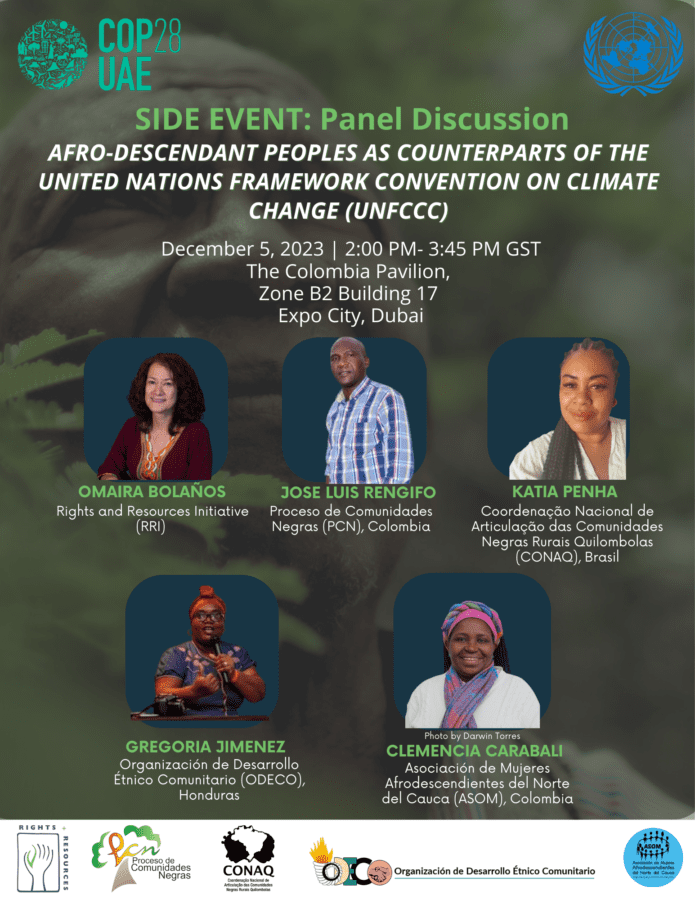WHO: Speakers will include Omaira Bolaños, Director of the Latin America Program, RRI; Jose Luis Rengifo (PCN); Katia Penha (CONAQ); Gregoria Jimenez (ODECO); and Clemencia Carabali (ASOM)