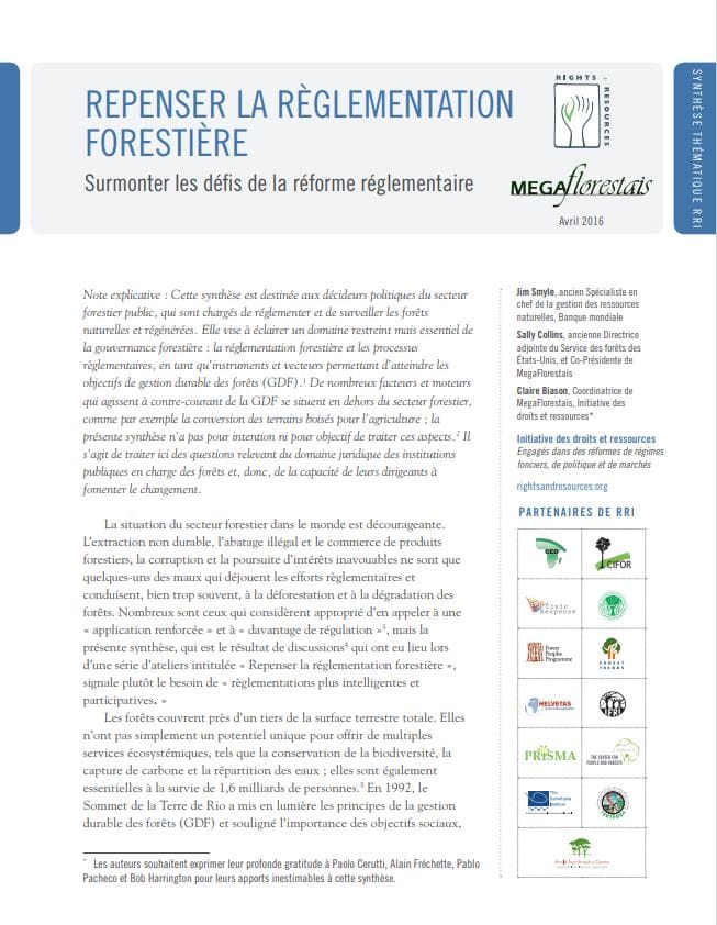Cette synthèse est destinée aux décideurs politiques du secteur forestier public, qui sont chargés de réglementer et de surveiller les forêts naturelles et régénérées. Elle vise à éclairer un domaine restreint mais essentiel de la gouvernance forestière : la réglementation forestière et les processus règlementaires, en tant qu’instruments et vecteurs permettant d’atteindre les objectifs de gestion durable des forêts (GDF). De nombreux facteurs et moteurs qui agissent à contre-courant de la GDF se situent en dehors du secteur forestier, comme par exemple la conversion des terrains boisés pour l’agriculture ; la présente synthèse n’a pas pour intention ni pour objectif de traiter ces aspects. Il s’agit de traiter ici des questions relevant du domaine juridique des institutions publiques en charge des forêts et, donc, de la capacité de leurs dirigeants à fomenter le changement.