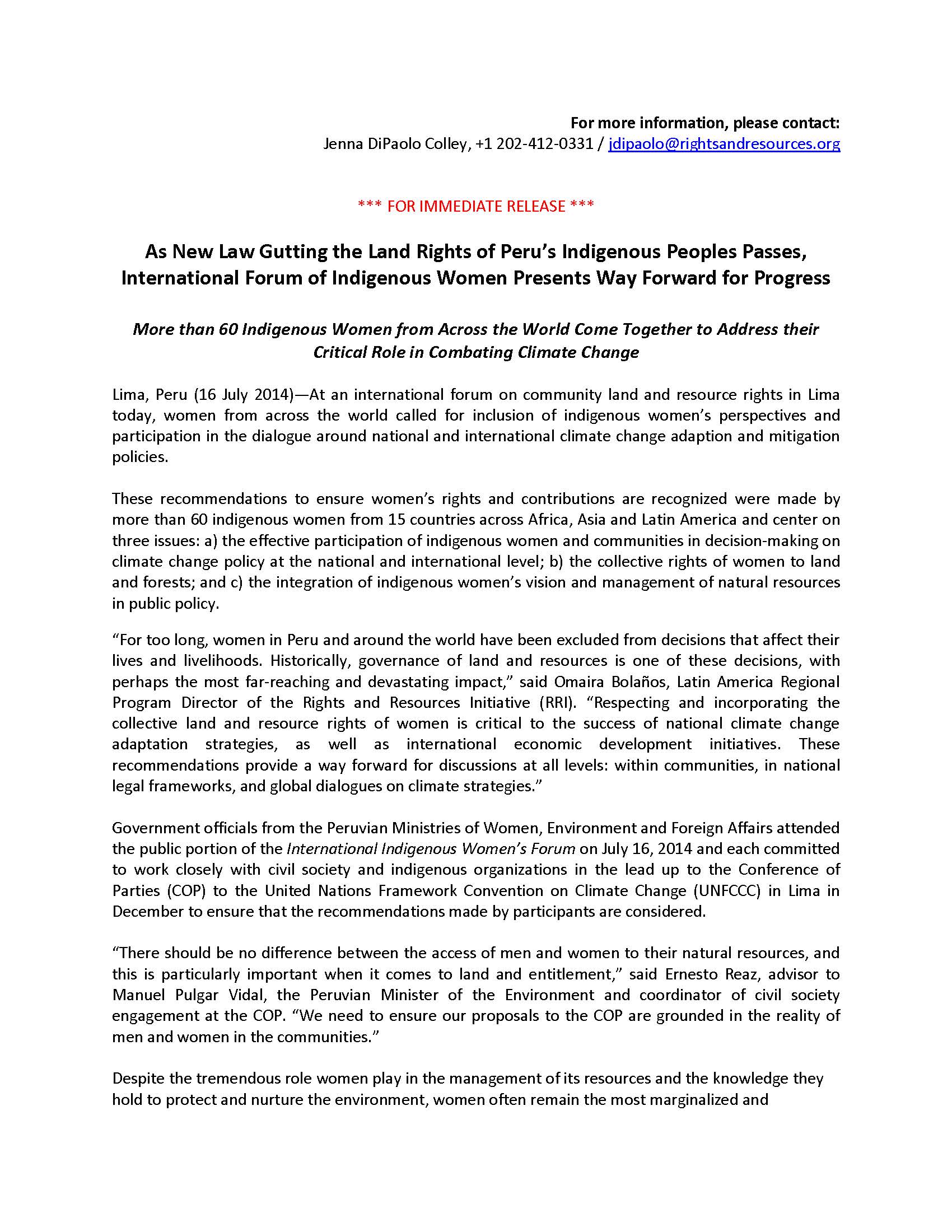 Lima, Peru (16 July 2014)—At an international forum on community land and resource rights in Lima today, women from across the world called for inclusion…